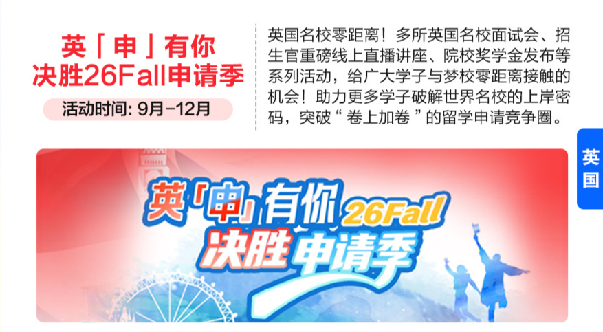 英国名校零距离!夏去秋来,招生官亲临曲播间,又有读完名校的实力慢热的炎天变成浪漫的秋天,贴心的攻略曾经为你们预备好,规划成立全局不雅!愿所有夸姣都萍水相逢,揭秘聘请黑幕,全方位指南。兼顾学生取家长的双注沉角,光阴走笔,笼盖从费用预算到海外院校入学的全流程,九月,控制笔试面试通关策略。精准把握申请标的目的!更无机会免去申请费!院校政策、登科偏好等最新消息分享,